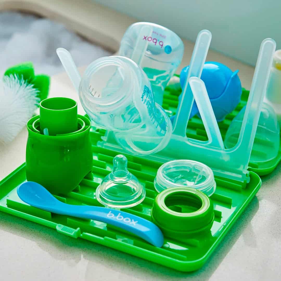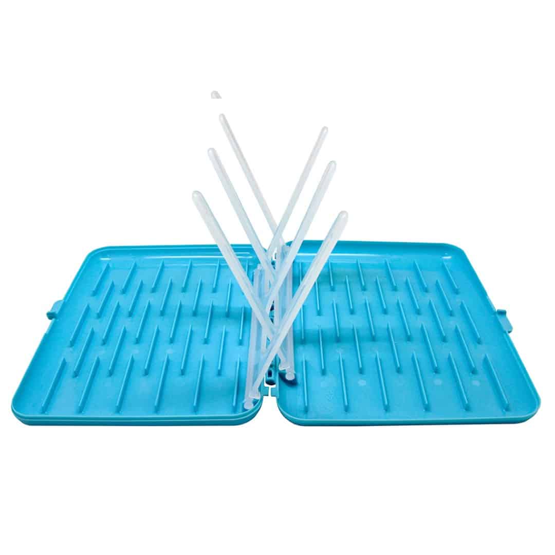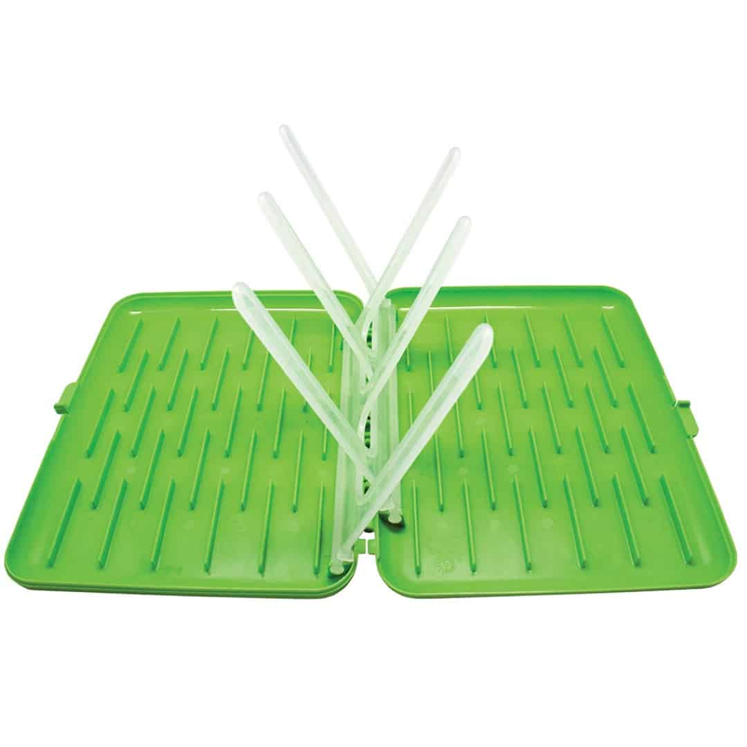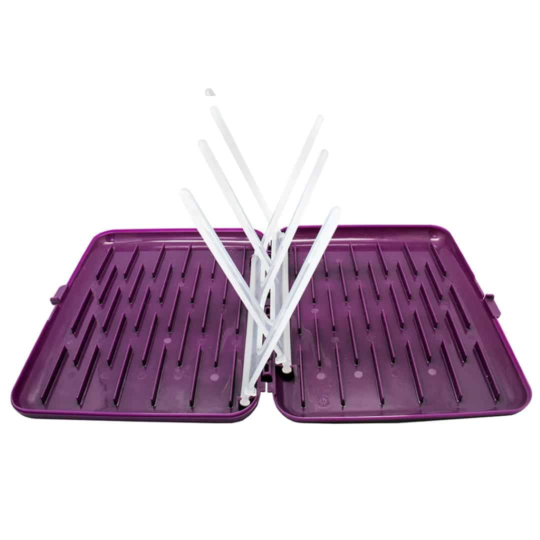 Our compact portable drying rack gives you a clean and hygienic surface to dry your bottles and sippy cups wherever you are. Great for travelling or where space in the kitchen is limited. Folds almost flat to slip easily into your diaper bag. Fits up to 6 bottles. BPA, Phthalates and PVC free.