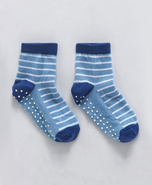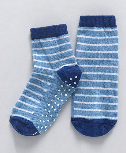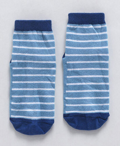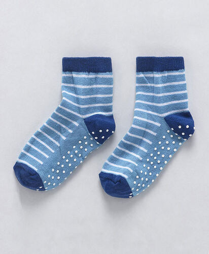 Baby Anti Skid Ankle Length Socks Striped Design - Blue