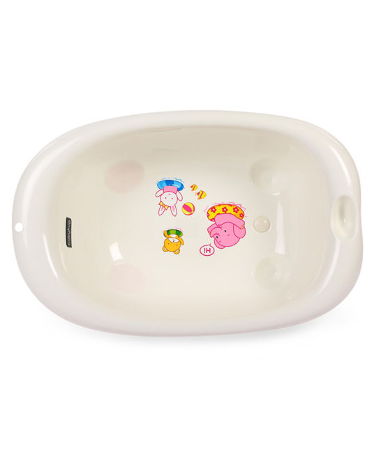 Create a safe, relaxing environment for your baby each time you bathe them in this bath tub. Made from plastic material with soft curved edges that make baby bath time easy for you, and comfortable for your little one. It provides plenty of room for your baby to safely bathe and play. Drain plug is present for quick and easy draining and drying. It is easy to carry and is specifically designed to suit the needs of babies. The cute print in the Bath Tub makes it visually appealing. This bath tub also comes with the soap case hence making it more ideal for use.