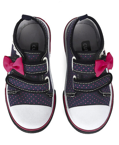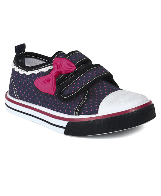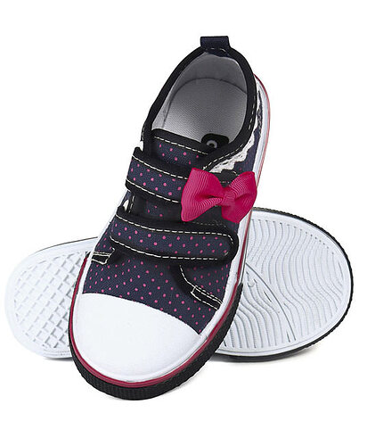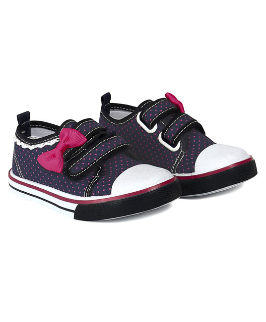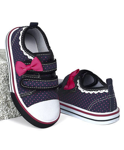Baby Canvas Shoes Dots Print Bow Applique - Navy Blue - FCY-56749-01