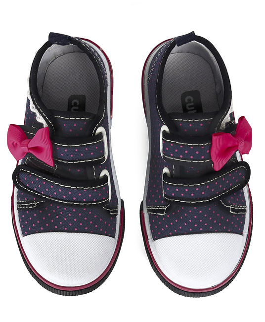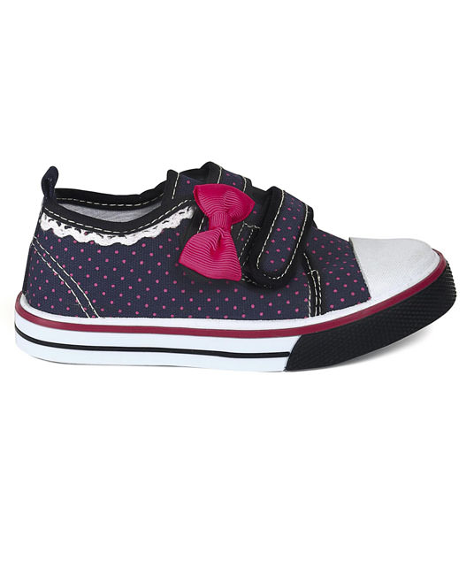 Baby Canvas Shoes Dots Print Bow Applique - Navy Blue - FCY-56749-02