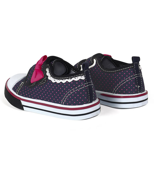 Baby Canvas Shoes Dots Print Bow Applique - Navy Blue