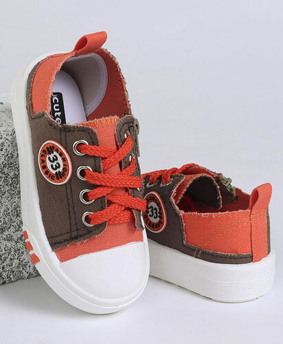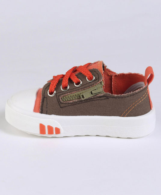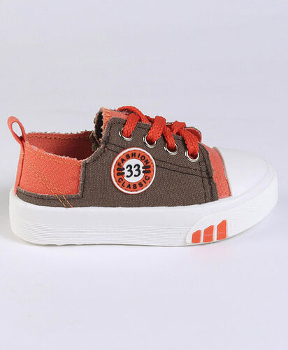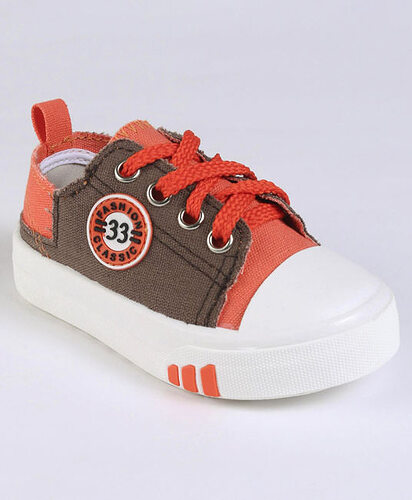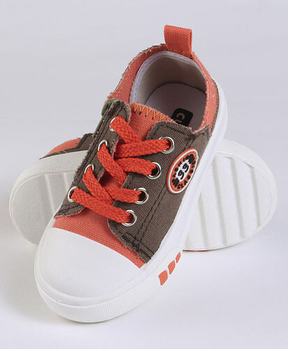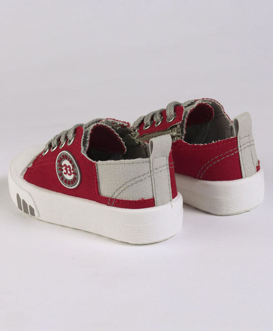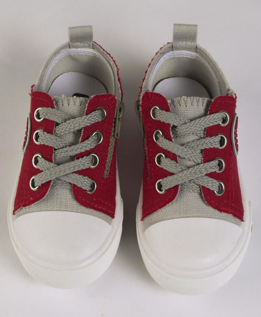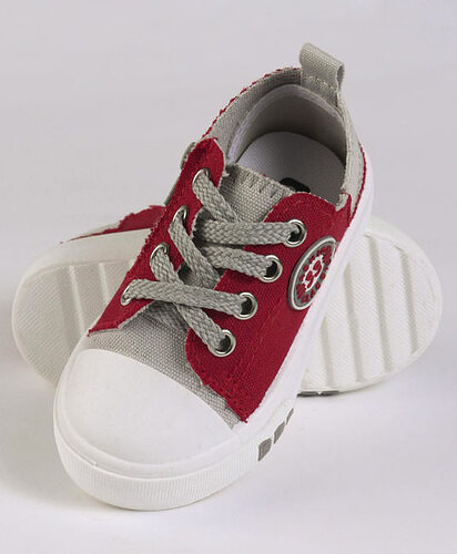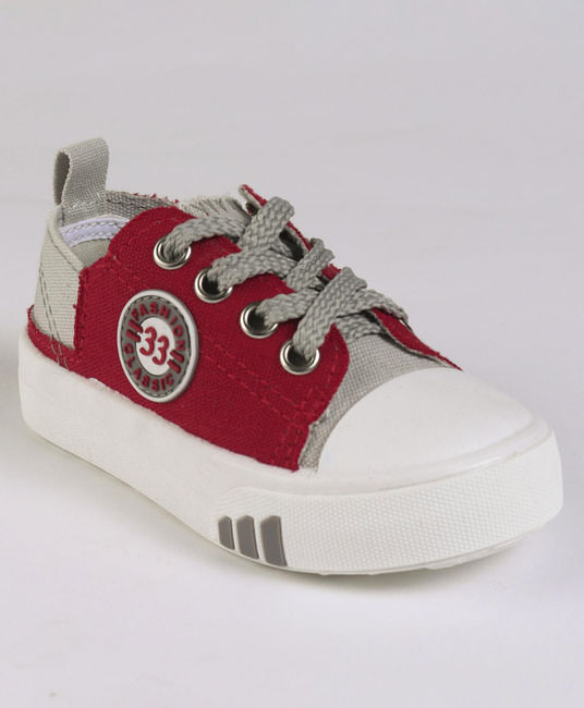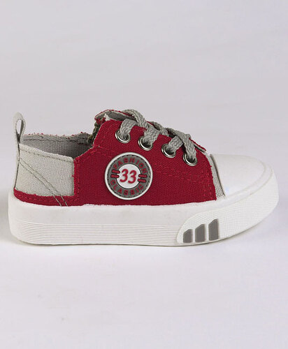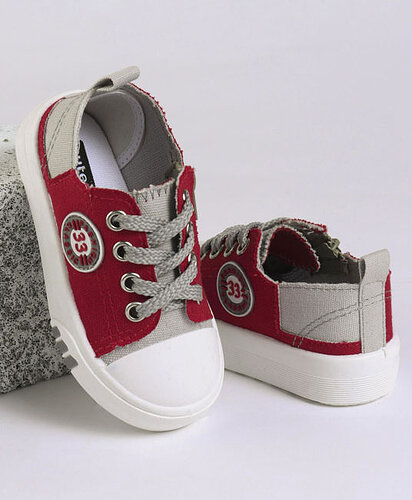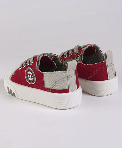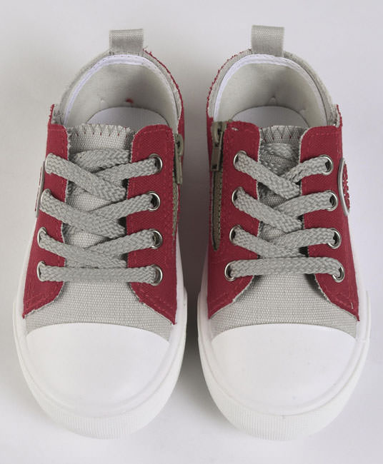 Baby Casual Canvas Shoes - Grey & Dark Red