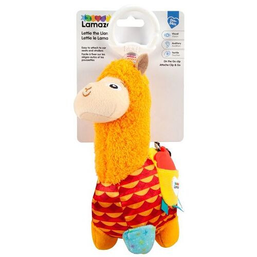 Hidden in Lettie’s saddle bag is an attached chewy apple - perfect for soothing sore gums! The bright, contrasting colors and patterns will fascinate baby as eyesight develops. Lettie includes a multi-purpose clip, designed to clip onto strollers or nappy bags so he can travel everywhere with you.