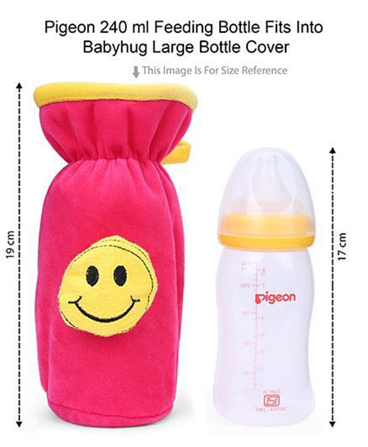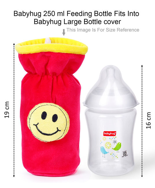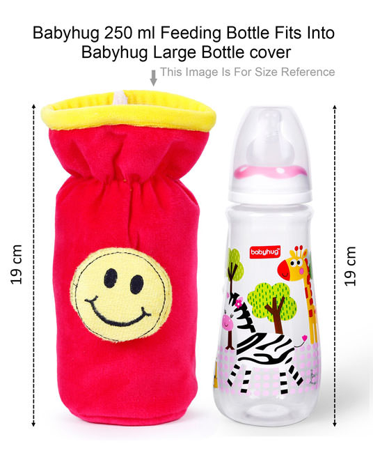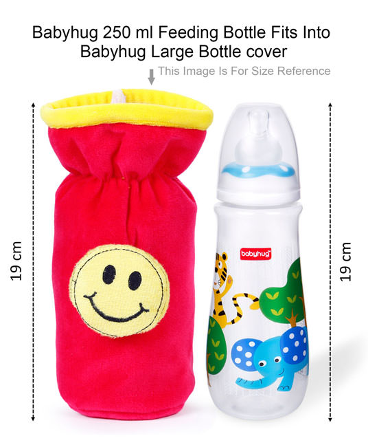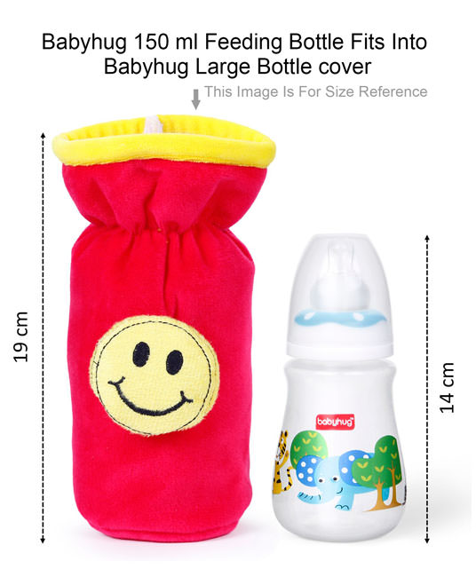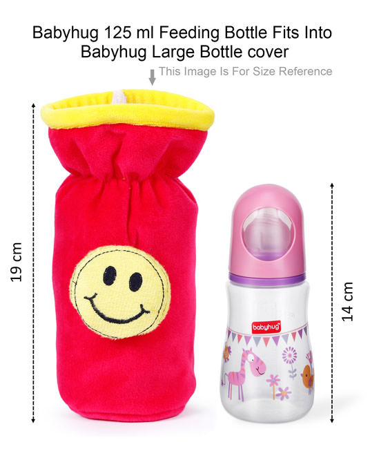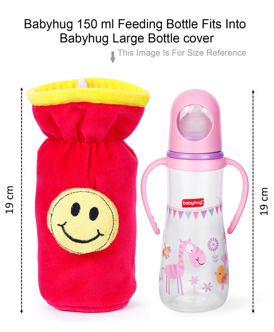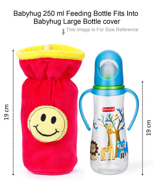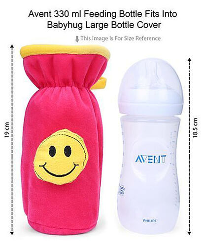 Your baby’s feeding bottle accessories are as important as the feeding bottles. Dress up and carry your baby’s feeding bottle in this plush velvet bottle cover from Babyhug. These bottle covers are designed to make bottle feeding fun! These covers protect feeding bottles from scratches, dirt. Bottled shape and a built in loop makes it easy to attach to the hook available in a pram, a carrier or a crib. Elasticated neck holds bottle perfectly and avoid slipping during feeding. These bottle covers are easy to clean and maintain thus making it ideal for everyday use. Available in bright colors with adorable designs.