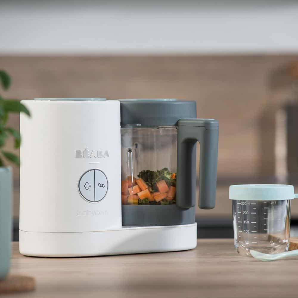 The Babycook Neo makes up to 1250ml of food in a sleek, patented countertop appliance that steam cooks, blends, and reheats/defrost all-in-one, in 15 minutes or less. Refrigerate or freeze leftovers, then simply defrost and reheat right in the Babycook Neo.