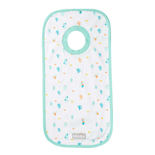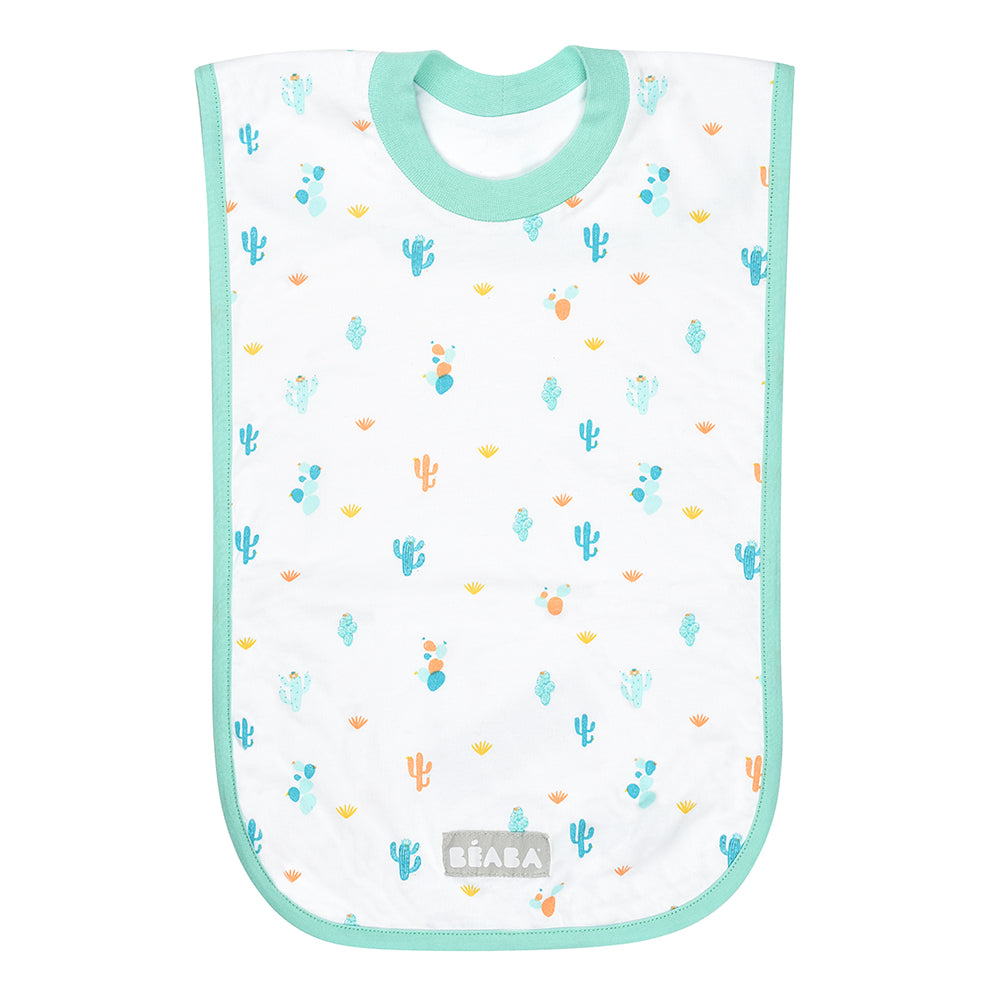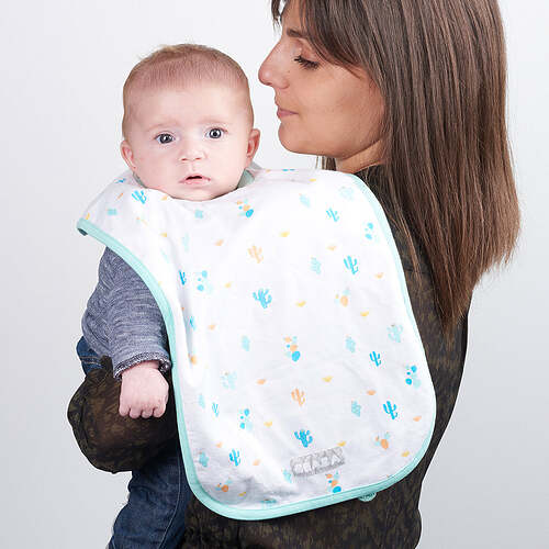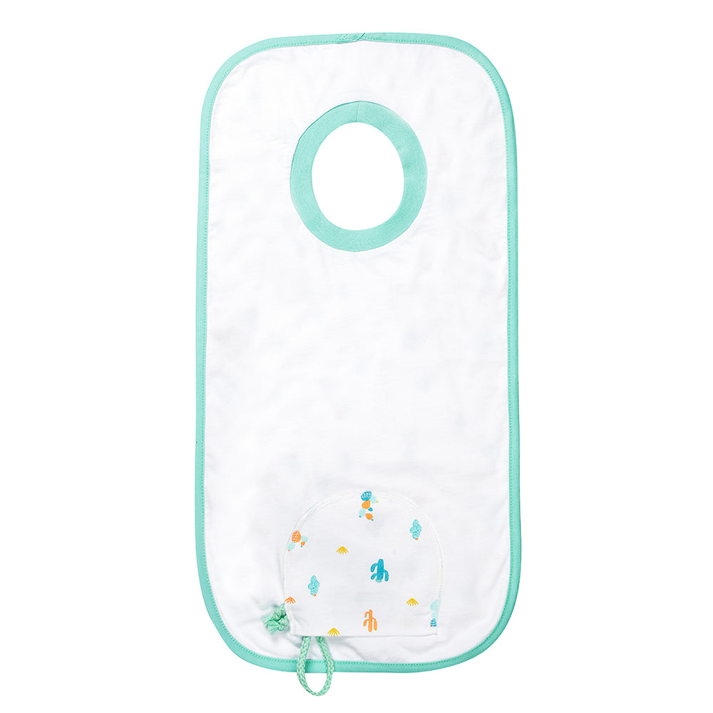 Easy to slip on, and thanks to its elasticated T-shirt collar, no risk of hurting children’s necks. A Bib that can be used from birth to childhood. Folds into its sewn-in pocket for easy and clean transport.