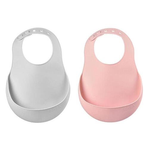 - Set of 2 bibs - Pink and Light Grey