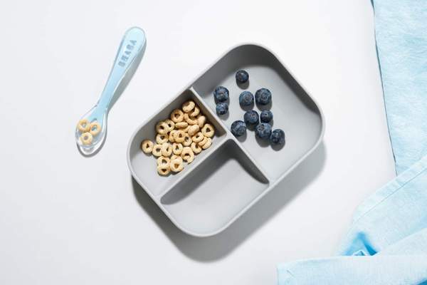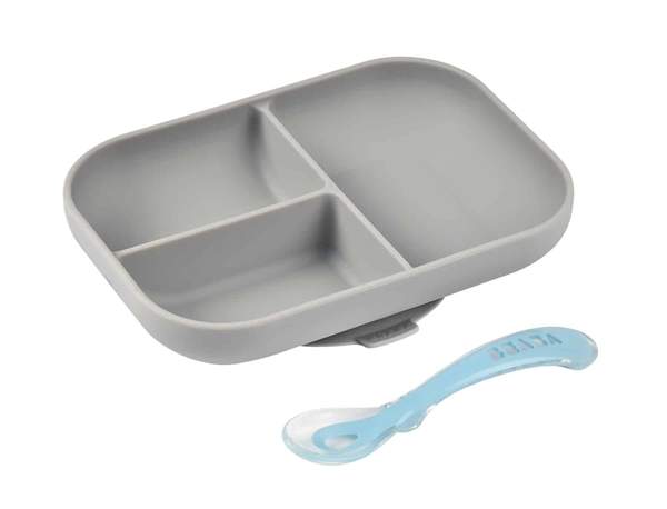 - 2-piece meal set includes: non-slip suction bottom divided plate and 2nd Stage Silicone Spoon