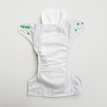 - Our cloth nappies have adjustable domes so one size fits most (OSFM)