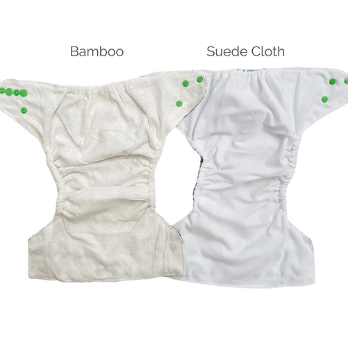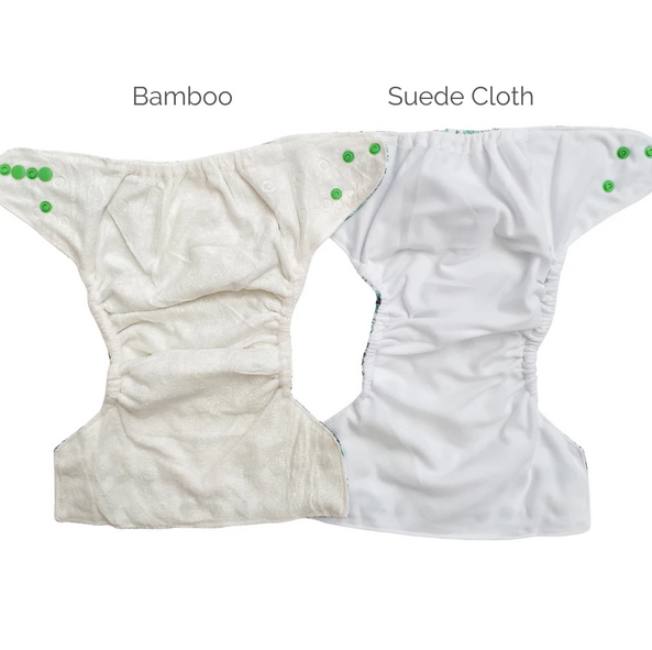 The nappies come with two options for the inside lining material (the fabric that goes against baby’s skin) - suede cloth or bamboo.