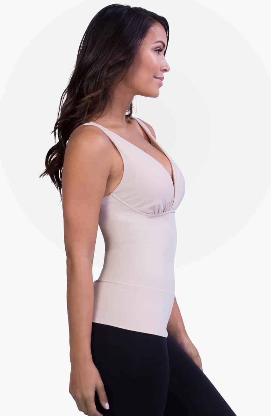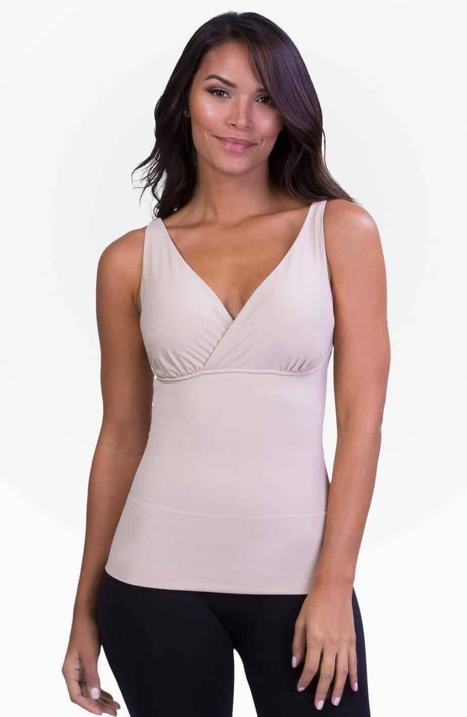 Our nursing tank is created with two strategic zones of compression to flatten your belly and battle back bulge. Our Muffinology™ technology helps compress the belly and controls muffin top, while the top section provides the perfect amount of support. The 3-inch bottom keeps your tank in place without rolling up. Pull-side access, without snaps or flaps, makes nursing easy anytime, anywhere.