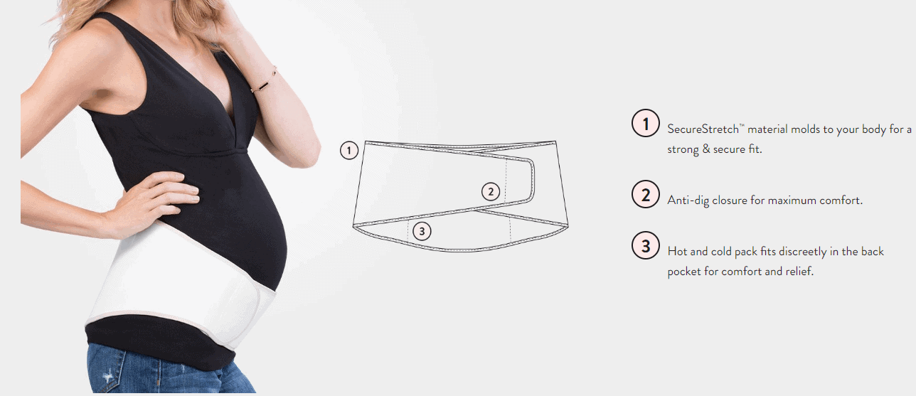 We added in a hot/cold pack that fits neatly in the back pocket for additional comfort and relief. It can also be used after you give birth by turning the belt around and putting the hot/cold pack over your healing belly.