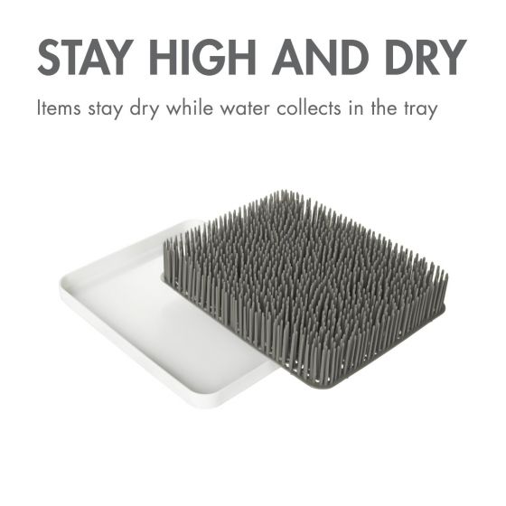 - Easily holds items upright for drying while excess water collects in the bottom tray