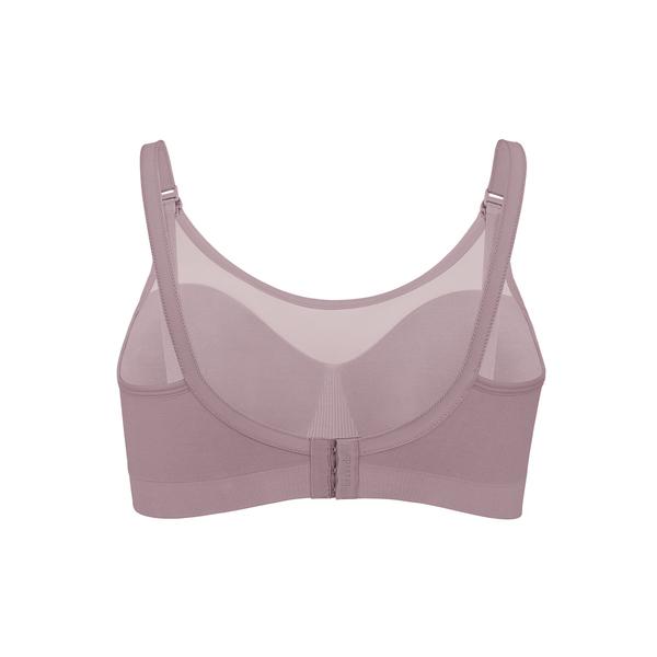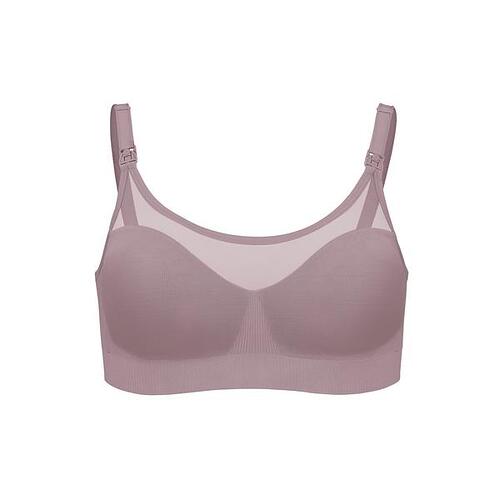 The Body Silk Seamless Sheer Nursing Bra is a modern and dainty take on our best-selling Body Silk Seamless Nursing Bra. With the same luxuriously soft yarns, the sheer design features a mesh neckline above a sweetheart cut, that exudes a lingerie-esque style. The barely-there mesh paneling and lower-cut neckline accentuates and bares femininity, beauty and delicacy. This novelty style is truly the definition of nursing bras you actually want to wear.