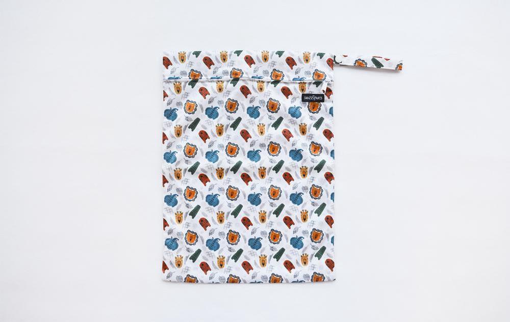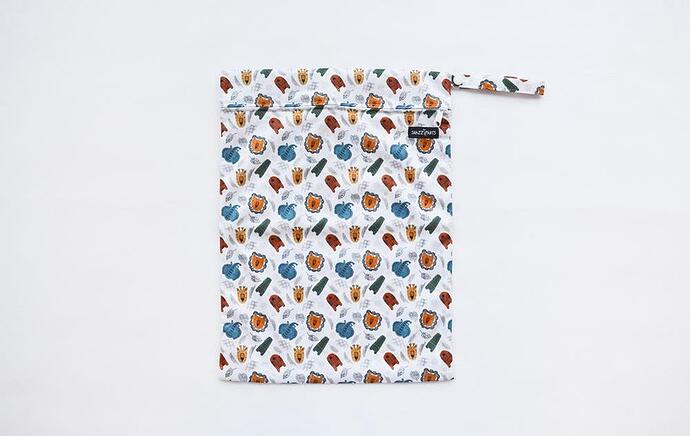 Comes with an elastic loop. We asked our customers what they used their wet bags for - see what they said: Dirty nappies (cloth & disposable) Dirty bibs after you have been to that lovely cafe for lunch Potty training - undies that have been “caught out” Dirty wipes Wet swimsuits Travel laundry (keep your undies separate from your shoes) or for separating dirty laundry from clean Kids travel bag - when you are out and about, just pop in a car or two, some raisins, a note book and a pencil. To carry wet face washer, toothbrush etc when travelling (The Brolly Sheets team all travel with a wet bag for this) For toilet training when out and about. Carry a set of dry clothes and wipes and fill with the wet ones if there is an accident. For toilet training when out and about. Carry a set of dry clothes and wipes and fill with the wet ones if there is an accident A busy bag…fill with a snack and small toys/colouring pad and crayons so it can be grabbed out at a cafe or while waiting for appointments to keep the little ones occupied Wet clothes from wee accidents out and about. Drink bottle bag, nothing worse than having one leak through everything! For putting pre-wetted cloth wipes in if you’re only expecting one change while you’re out. After a pre-school / playcentre session to put the kids clothes in, they are usually wet and sandy A book bag. I like the loop to hang on a hook, that makes it great for changing rooms/bathrooms etc Muddy /wet sports gear! My kid’s drink bottles! No matter whether the label says ‘spill proof’, mine always seem to leak through everything! Frozen face cloths which my wee teether likes to chew on! Frozen food because as it defrosts there is condensation on the outside and sometimes the contents can leak leaving messes Dirty shoes before they hop in the car I use them to put spare clothes for both my boys… Being boys I never know when they get soiled so when the are it gets used again for their soiled clothes! And also being waterproof… Especially great when their clothes are wet! dirty/wet clothes When you go shopping at supermarket. For the leaking meat. (E.g chicken) Carrying food in another bag for a party but just to be safe keep it in the bag for no spill in the car. And for you artists out there: Wet paint brushes (for people that paint for a living) Care instructions: Turn inside out and cold or warm wash to 40 degrees. Line dry or low tumble dry. Do not soak or bleach. Do not iron or dry clean. Do not use fabric softener Composition: Polyurethane laminate (PUL) waterproof outer with a zipper and elastic loop.