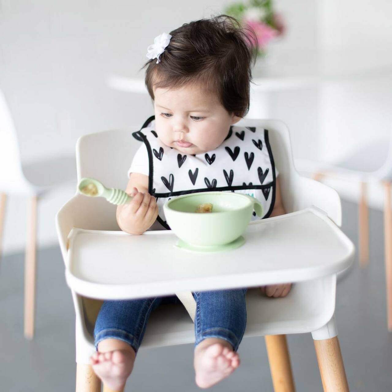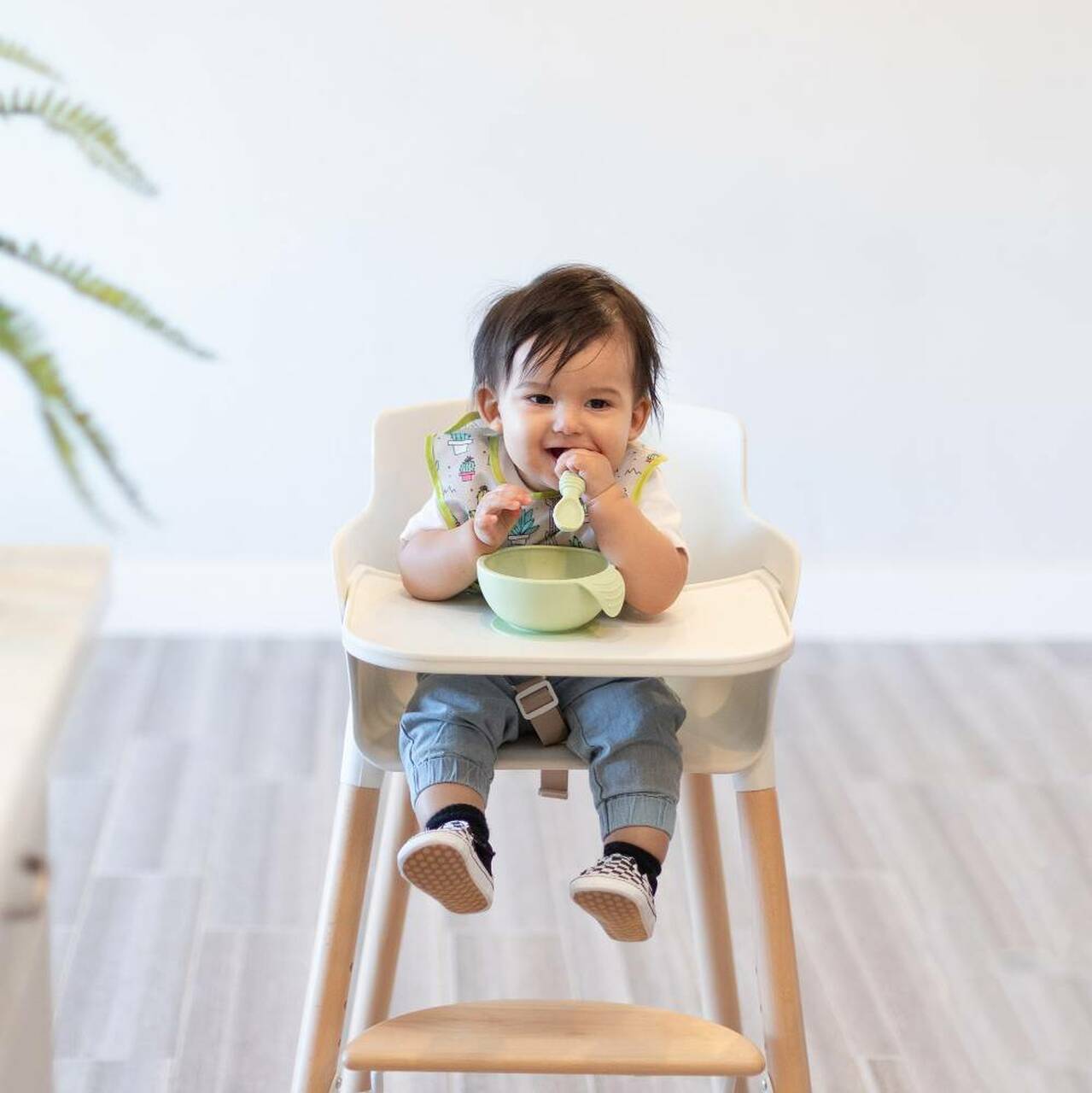 We know there will be a lot of food hitting the floor during mealtime. Thanks to our strong suction bases, we're helping to stop those dishes from going airborne! Our suction bases also help keep the dish in place while baby is learning how to use utensils and grab onto those slippery first foods.