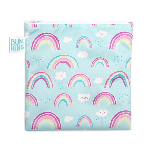 The better alternative to single-use plastic bags, our reusable large snack bags / sandwich bags are made from the same waterproof fabric as Bumkins award-winning SuperBib. A smooth zipper closure doesn't hold crumbs and single-ply construction means no worrying about icky stuff growing between layers of fabric. Great for food and fun, snack bags help organize lunches, toys, electronics and more. They’ll even fit a bagel!