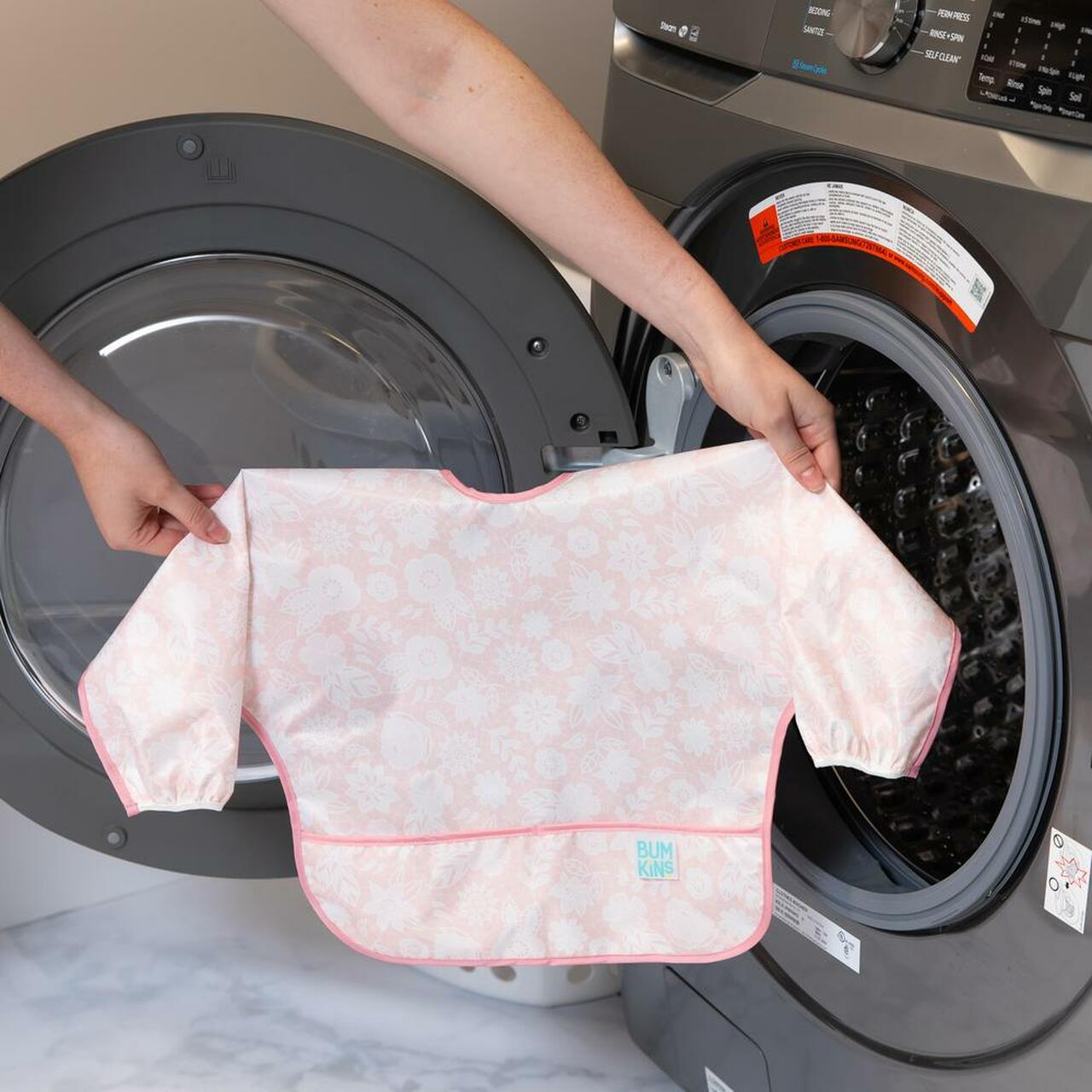 Who has time to hand wash? Here at Bumkins, we're all parents. We know there's no end to the laundry, so we've made it even easier for you. Flip that pocket inside-out, fasten your aplix, and toss that bib into the washing machine.