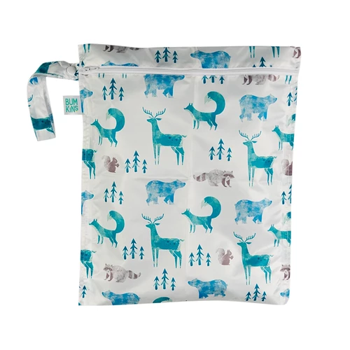 The better alternative to single-use plastic bags, the reusable Wet Bags are made from the same waterproof fabric as Bumkins award-winning SuperBib. These bags feature heat-sealed seams for true waterproof protection. A smooth zipper closure locks away the mess and single-ply construction means no worrying about icky stuff growing between layers of fabric. Wet bags are great for carrying diapers, dirty gym clothes and wet swimsuits. Not just for wet stuff – these bags make excellent organizers for toys, accessories, toiletries, electronics, travel and more! With a snap handle, snap your bag wherever you need it – stroller, changing table or suitcase. Bags are single compartment, non-gusseted, non-insulated and non-stretch.