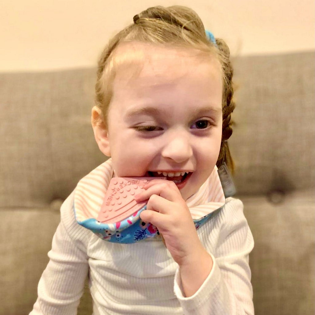Our all needs Neckerchew with an oral sensory chew is a super absorbent dribble bib.