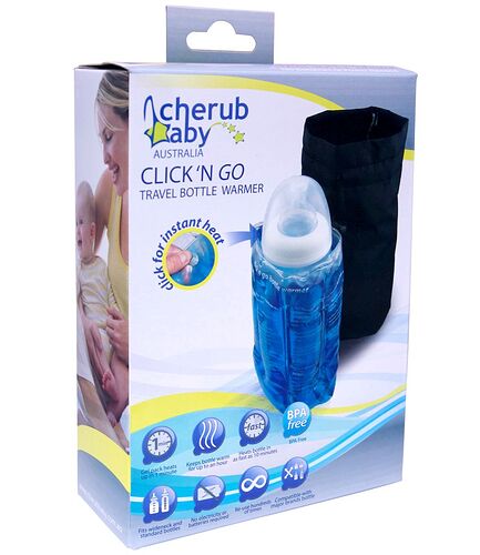 Cherub Baby is synonymous with innovation. The Click and Go Travel Bottle warmer is the latest in innovative solutions to babycare. Without the need for a power point or batteries you can heat baby food and milk on the go with the click activated heating system.