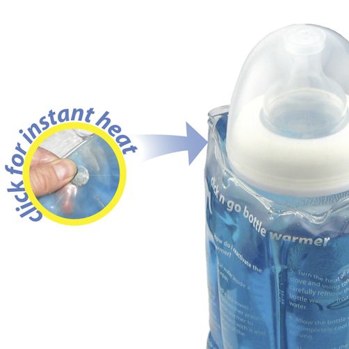 Simply click the metal disc in the gel container and a reaction will instantly take place to heat the wrap around gel sleeve to use to heat your baby’s food or milk. The sleeve is reusable and can be used for both heating and cooling, depending on your needs.