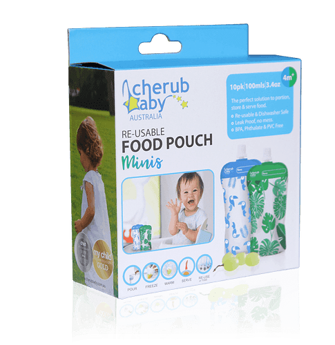These mini reusable baby food pouches are an extremely portable, and eco-friendly way to store, freeze, warm and serve homemade baby food. The smaller size makes them perfect for lunch boxes and single serves of baby food or yoghurt.