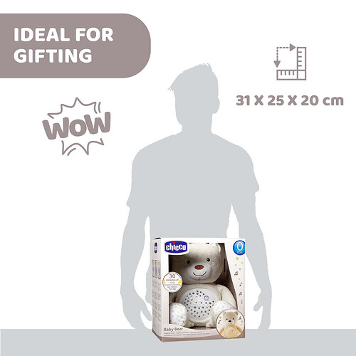 1 x Chicco - Baby Bear Soft Toy. Batteries: 3 x AAA 1.5v (not included)