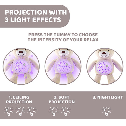 Soft projector with light effects and melodies that will become the best companion during your childhood and during the time of rest.