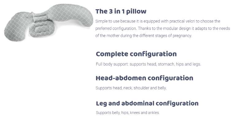 The Total Body pregnancy pillow has been developed in collaboration with physiotherapists to ensure excellent body support and promote lateral position. The pillow consists of three pieces that can be adjusted for the perfect combination to suite every need. It offers total support to promote peaceful rest and allows mum to be comfortable during the different stages of her pregnancy. The cushion is completely machine washable and tumble dry.