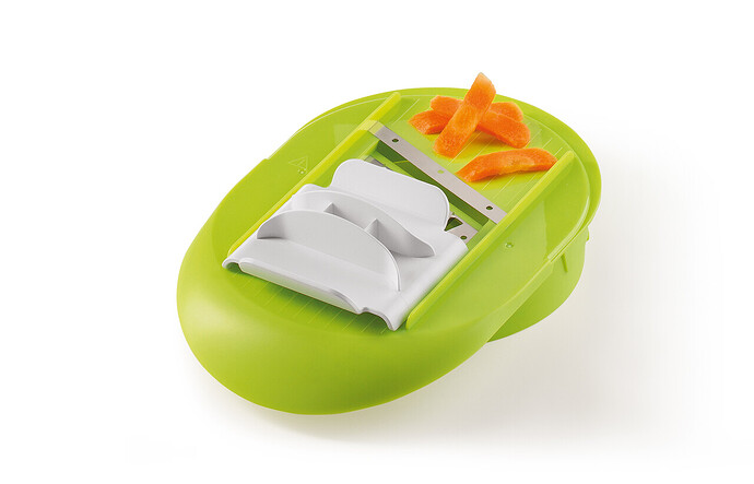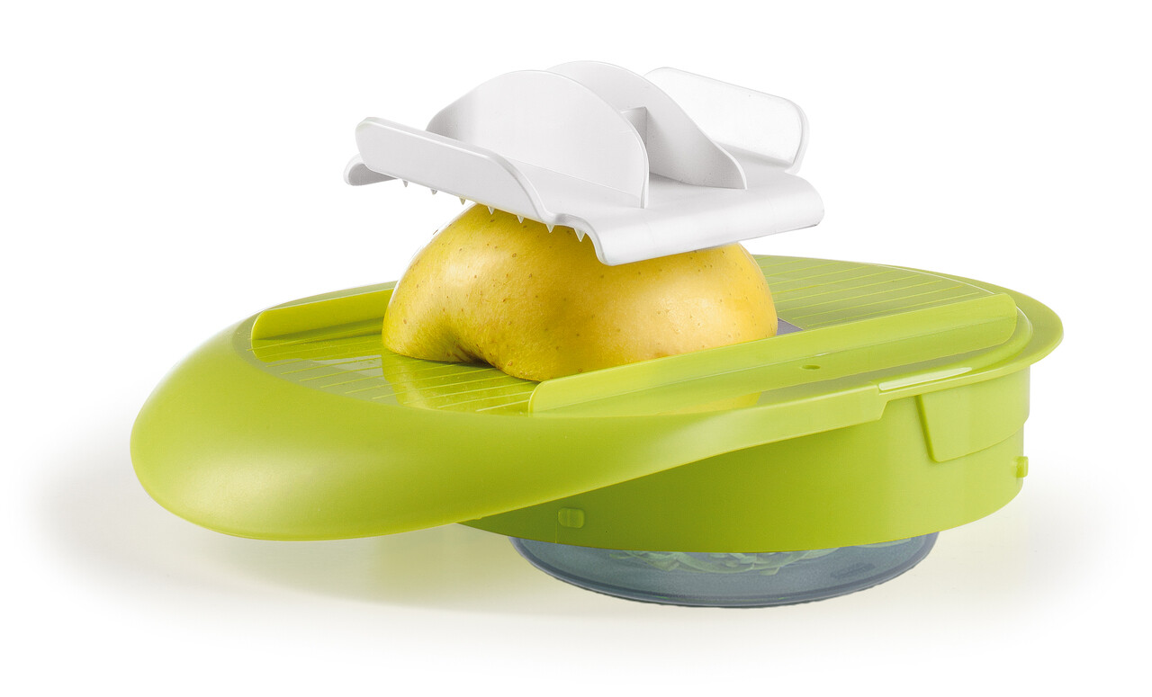 - A Unique and innovative slicer to easily cut both ingredients and cook in time, without making any mess and also without using cutting boards, knives or other bowls.
