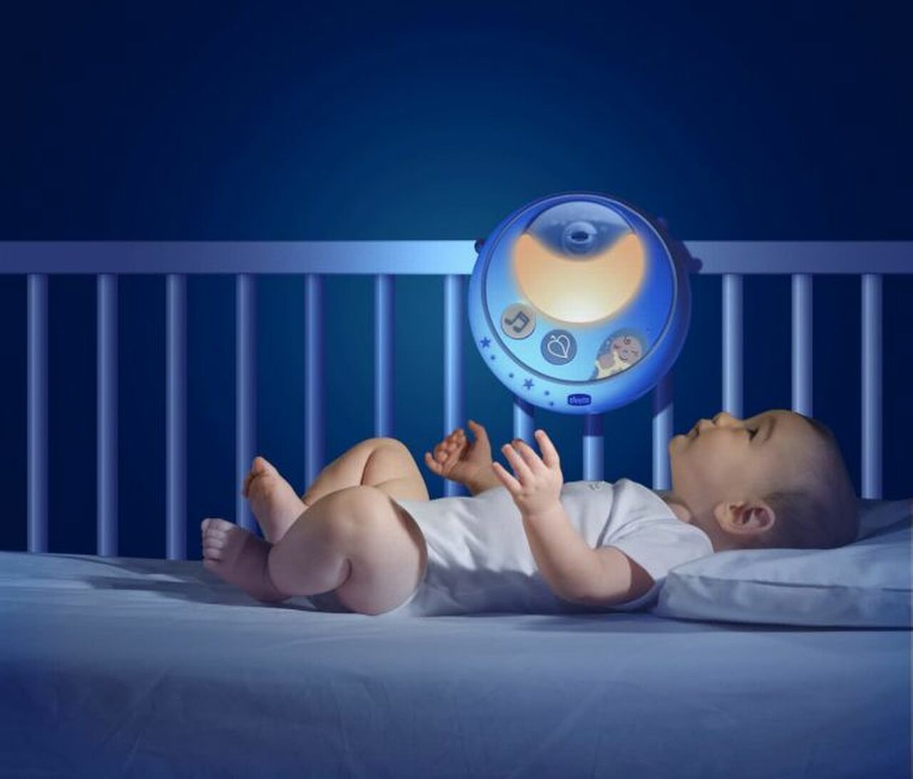 - Double projection system: projection on the cot mobile and on the ceiling.