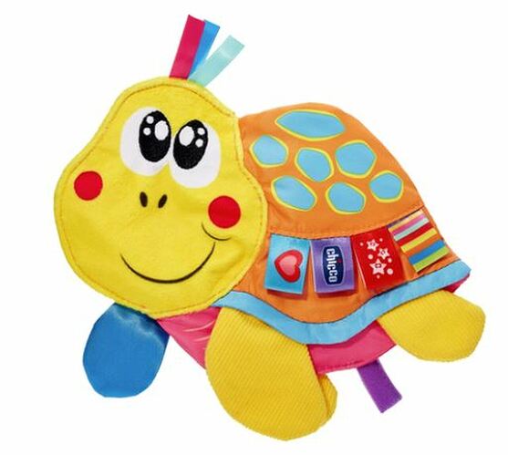 - A soft and colorful turtle that helps your child develop tactile skills , thanks to the different fabrics that make it up