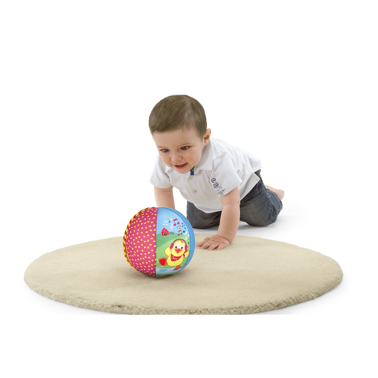 Chicco Soft Ball is an endearing and adorable companion for your little one. This Soft Ball from Chicco is made up of very soft material and a very light weight toy. Designed especially for kids aged above three months with some extra flaps of material, this Soft Ball is very easy to hold and grasp for the babies. Along with it, babies will have an amusing time listening to the rattling sounds as and when they shake the ball. This brightly colored Chicco Soft Ball is an apt gift for a boy as well as a girl and it will help in developing your child’s tactile and musical skills. When your baby shakes and rolls this Musical Ball, it triggers different sound effects and musically cheerful tunes, which help develop their sense of rhythm and musical skills.