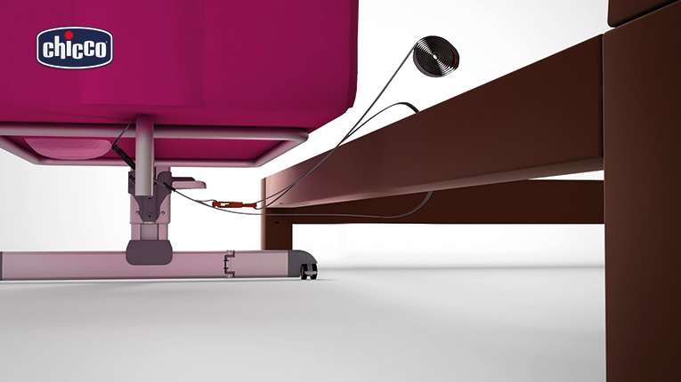 The Chicco Next2Me crib is easy to hook onto your bed thanks to it's intuitive fixing system and to the fold-able side panel. The hook will be secure if the straps are attached to the base of the crib firmly. The Next2me crib can also be used on a bed with drawers. Lower the side of the crib to be able to pull the crib right up against your bed and see, comfort and access baby easily. If you would prefer the side of the crib up you can easily zip the sides up, and still see baby through the mesh window.