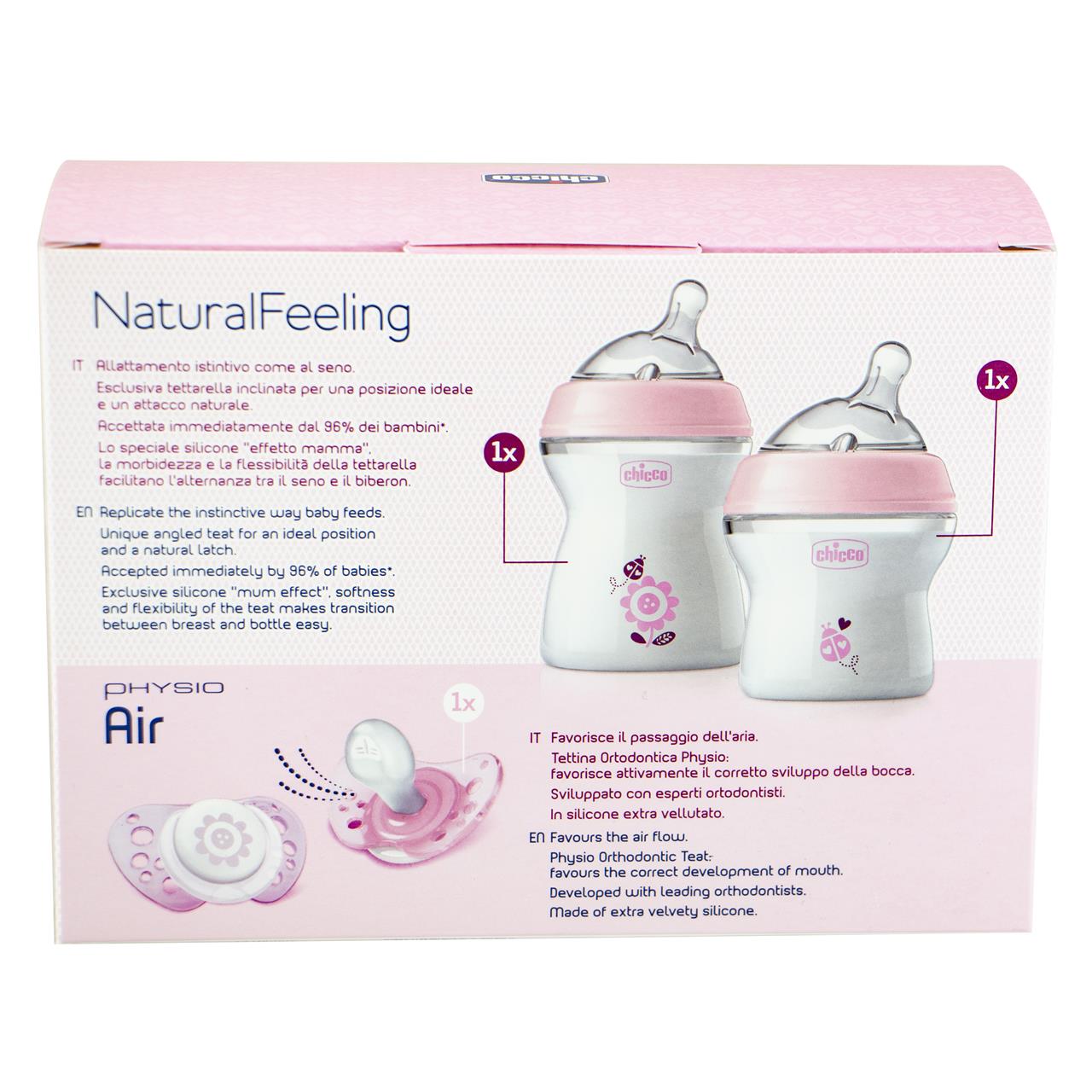 Natural latex specifically designed to simulate the nipple during sucking, the teat lengthens twice as much with respect to its normal rest position. Ribbed Rings: Increases the natural elasticity, allowing the teat to lengthen and giving it a texture similar to that of the maternal nipple It is intended for use with the Chicco Wellbeing or glass feeding bottles