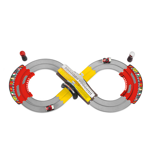 A new race car concept branded Scuderia Ferrari, with official sounds and decorations. Can be played on their own or with a friend.- Interactive track, a ring shaped track.