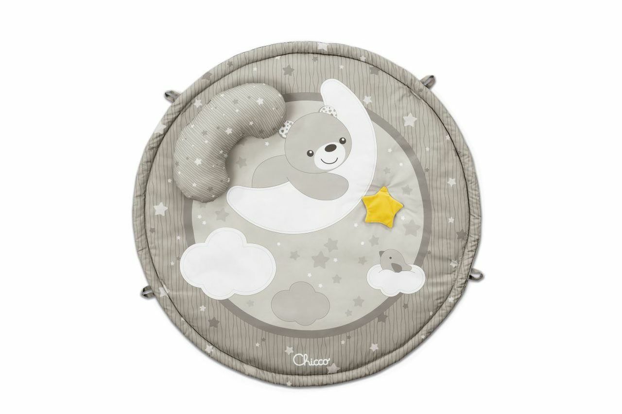 - Soft 83cm round shaped mat with pillow, perfect for Tummy Time (Day);