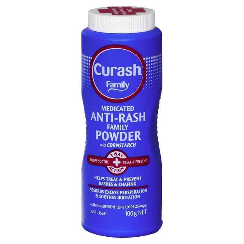 Curash Medicated Anti-Rash Family Powder is a soft, fine powder formulated with zinc oxide and cornstarch to help soothe, treat and prevent rashes, skin irritation and chafing.
