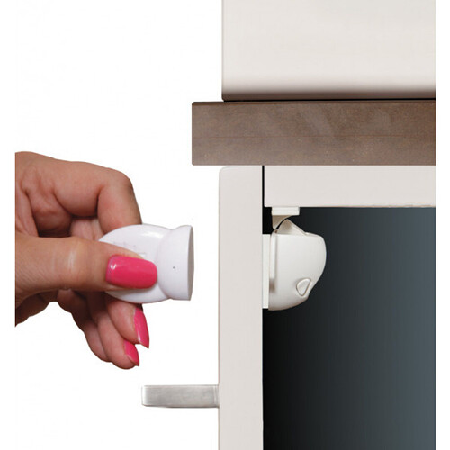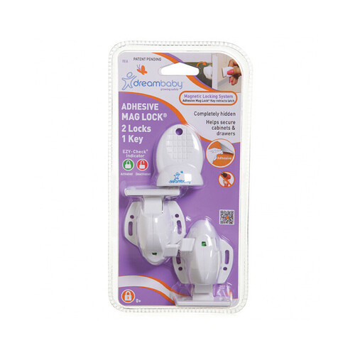 Babies are curious by nature, and it’s not until they start exploring every nook and cranny of their home that the amount of valuable and potentially dangerous items becomes apparent to mom and dad. That’s why we created Dreambaby® Adhesive Mag Locks®, one of the very best safety items on the market. Dreambaby® Adhesive Mag Locks® are sturdy, invisible, and completely user-friendly. They adhere to the inside of opening furniture, like cabinets and drawers. Completely out of sight, they ensure safety without producing eye-sores or tempting curiosity. The secret to the design is a powerful self-locking mechanism which is simply and easily opened by placing the magnetic key over the lock. These unobtrusive locks feature an adhesive backing and come with a template for painless installation. Because they don’t require screws, they’re perfect for fine furniture, or for families who live in rented or temporary housing. For even greater convenience, each lock features a disengaging feature and an EZY-Check Red/Green Indicator. This allows you to disengage the lock when it isn’t necessary and easily verify whether the lock is engaged or disengaged. Perfect for new parents, grandparents, baby-friendly homes, offices, and more. Dreambaby® Adhesive Mag Locks® are the easiest way to protect your good dishes, photo albums, and more while keeping your children safe. They also make an excellent baby shower gift!