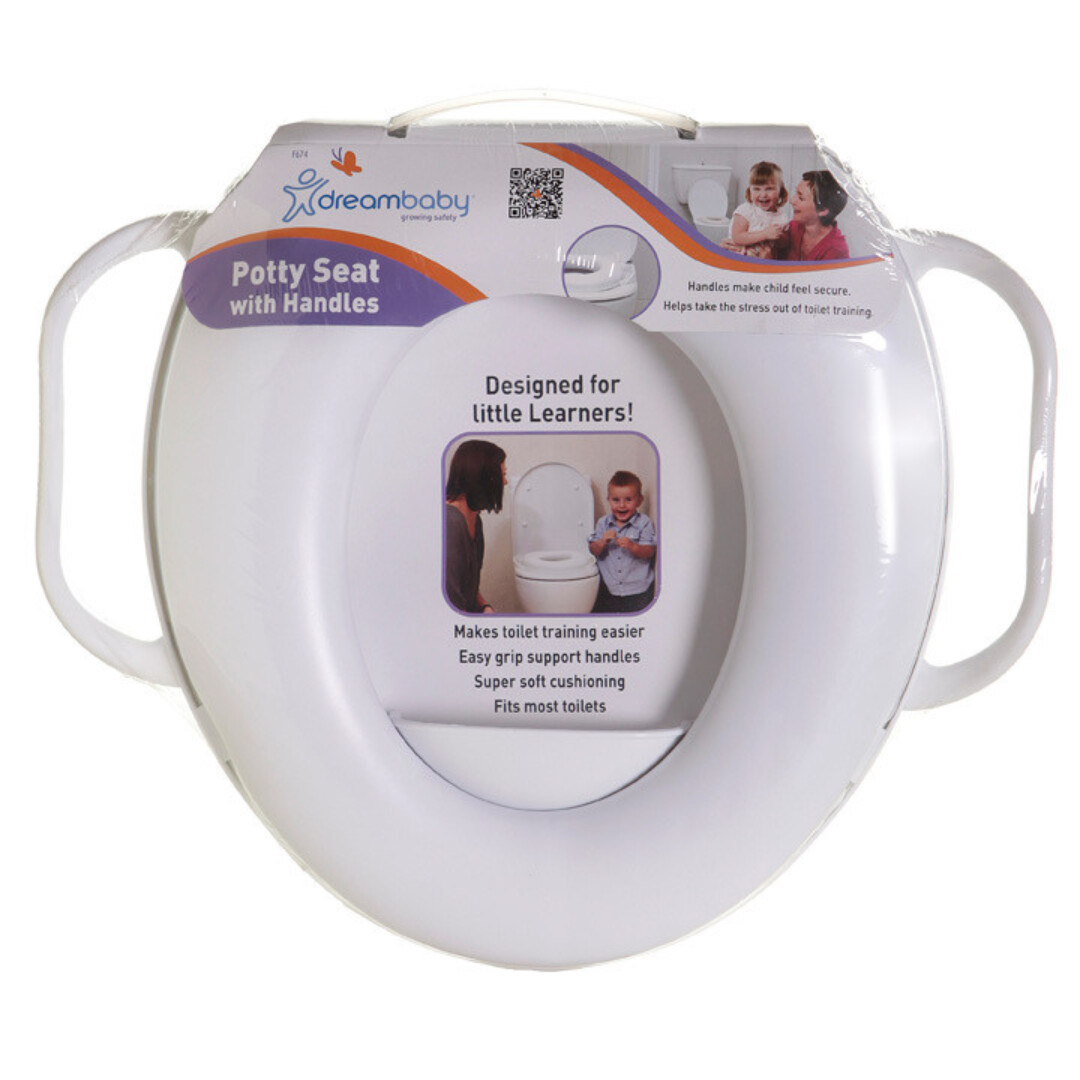 Dreambaby® Potty Seats With Handles help makes toilet training easier for both parents and children. The comfortable padded seat with strong handles is just the right size for children.