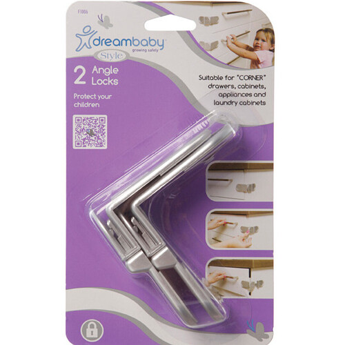 Dreambaby® Style™ Range Angle Locks blend seamlessly with stainless steel or silver décor elements. They help keep children safe from harm and are suitable for corner drawers, cabinets, appliances and laundry cabinets.