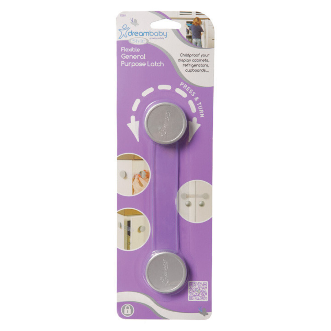 Dreambaby® Style™ General Purpose Latches help prevent children from accessing cupboards, cabinets, refrigerators, appliances and toilets. They are suitable for most surfaces and the stylish silver finish will blend seamlessly with your existing home decor.