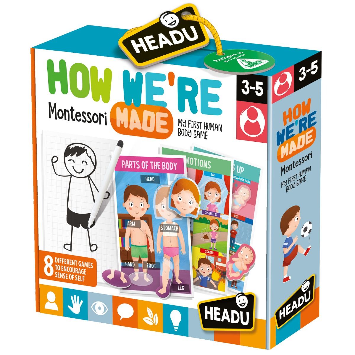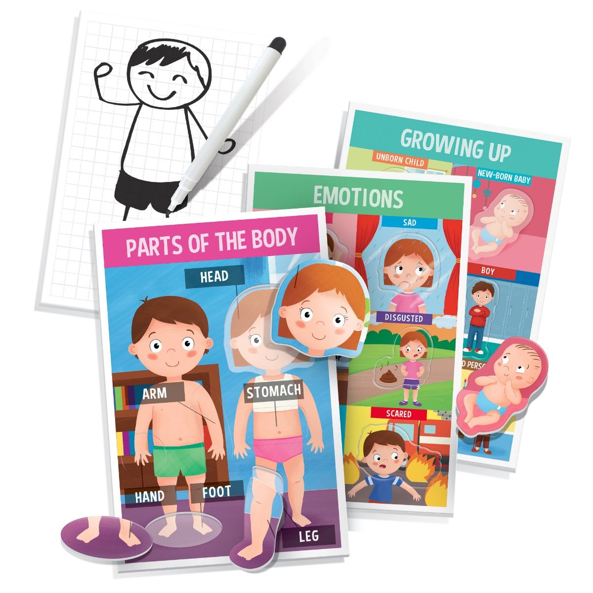 | CONTENTS: | 7 "Discover the Human Body" cards; 42 cut-out shapes; 1 small whiteboard; 1 erasable pen |