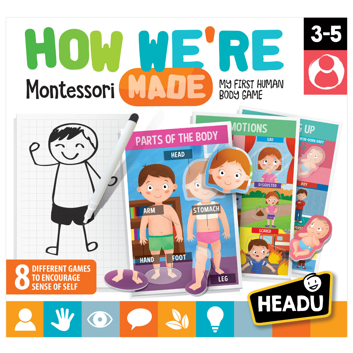 There's lots of fun to be had sorting the shapes and learning to recognize physical and emotional states and identities. Children fit the cards into their matching slots to discover parts of the body, the five senses, facial expressions and much more! Then draw the human body on the whiteboard.