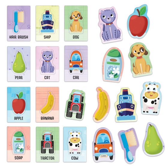 Listening to and pronouncing your very first words. With special slotted shapes, these flashcards activate various sensory channels and, thanks to the Montessori method of the three times, favour the listening and comprehension of the first words and of other concepts, in a natural and spontaneous way.