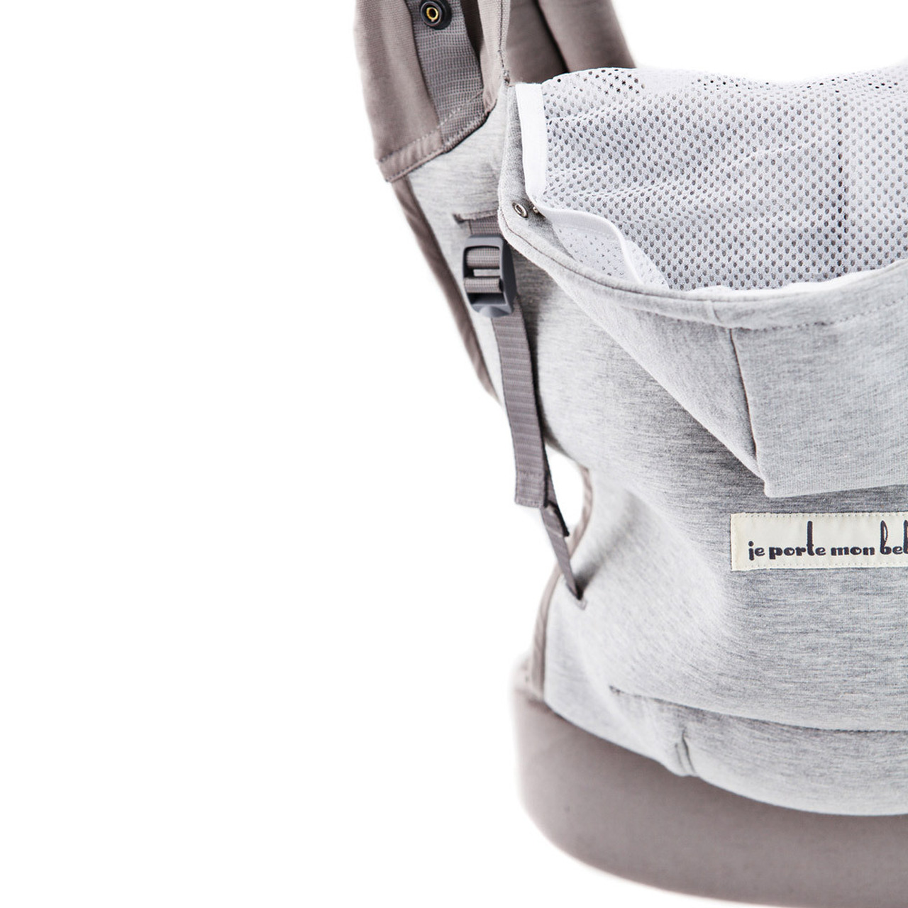 This is a lighter, simple to use premium carrier. The fabric is made of a 3D breathable all-seasons material offering a soft and slightly stretchy wrap-like feeling - OekoTex 100 and each side of the baby carrier is cotton.