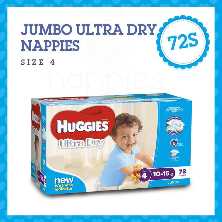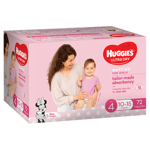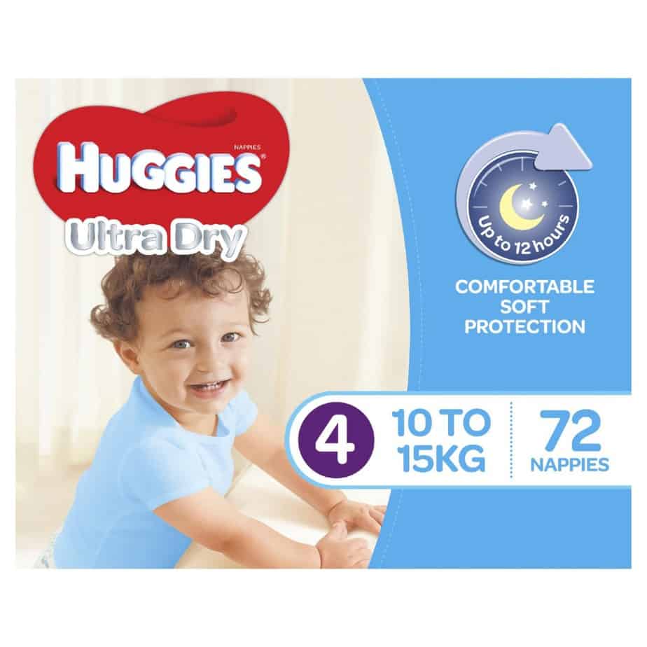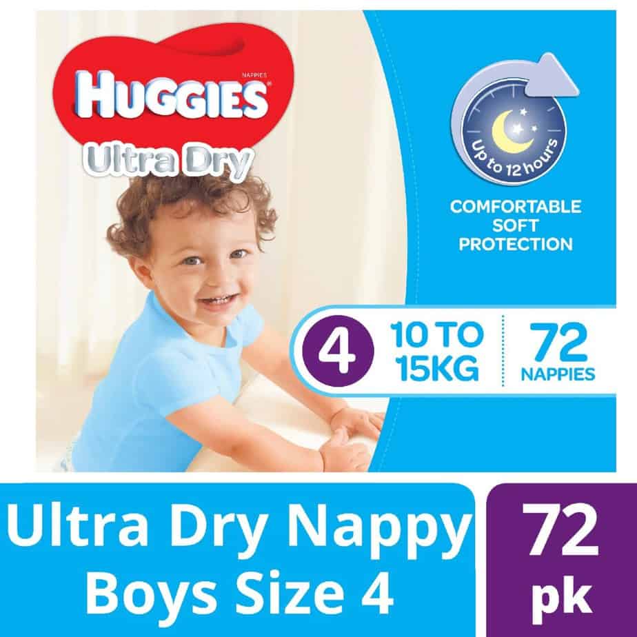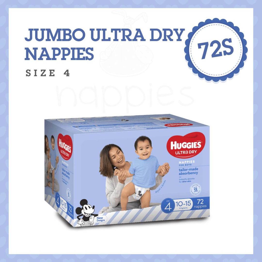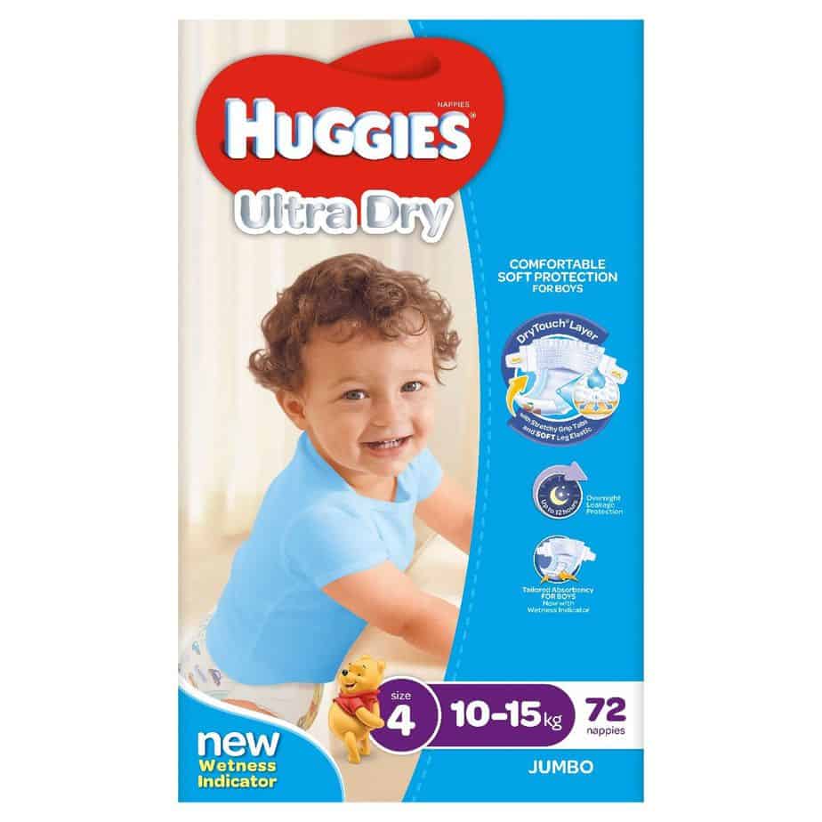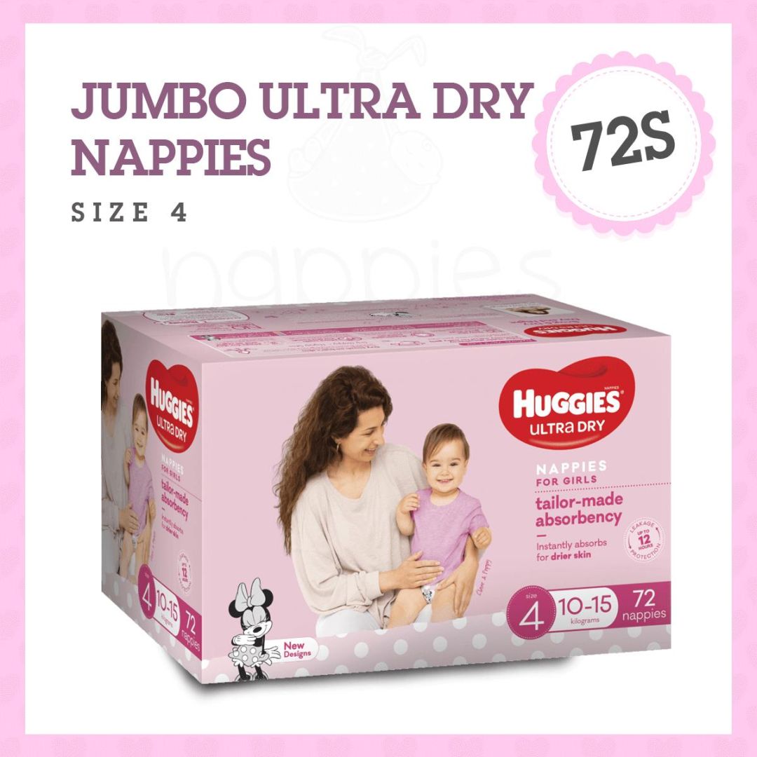 Huggies Ultra Dry nappies are available in four sizes: