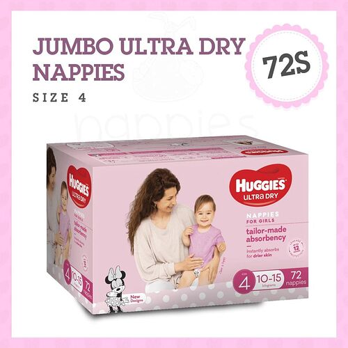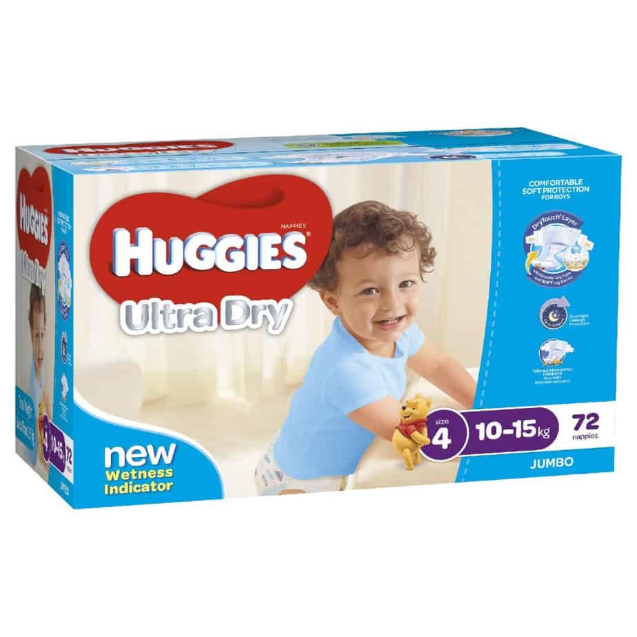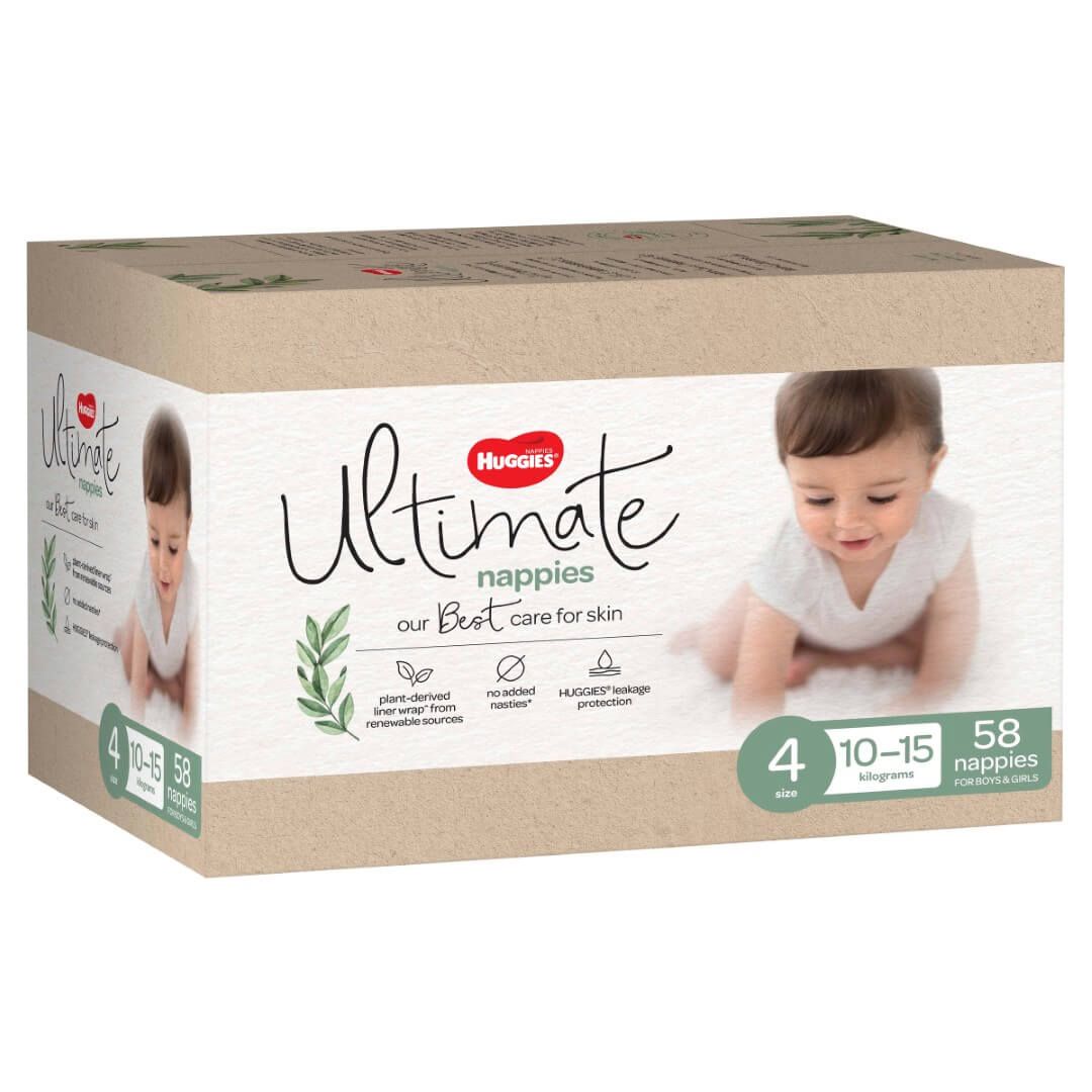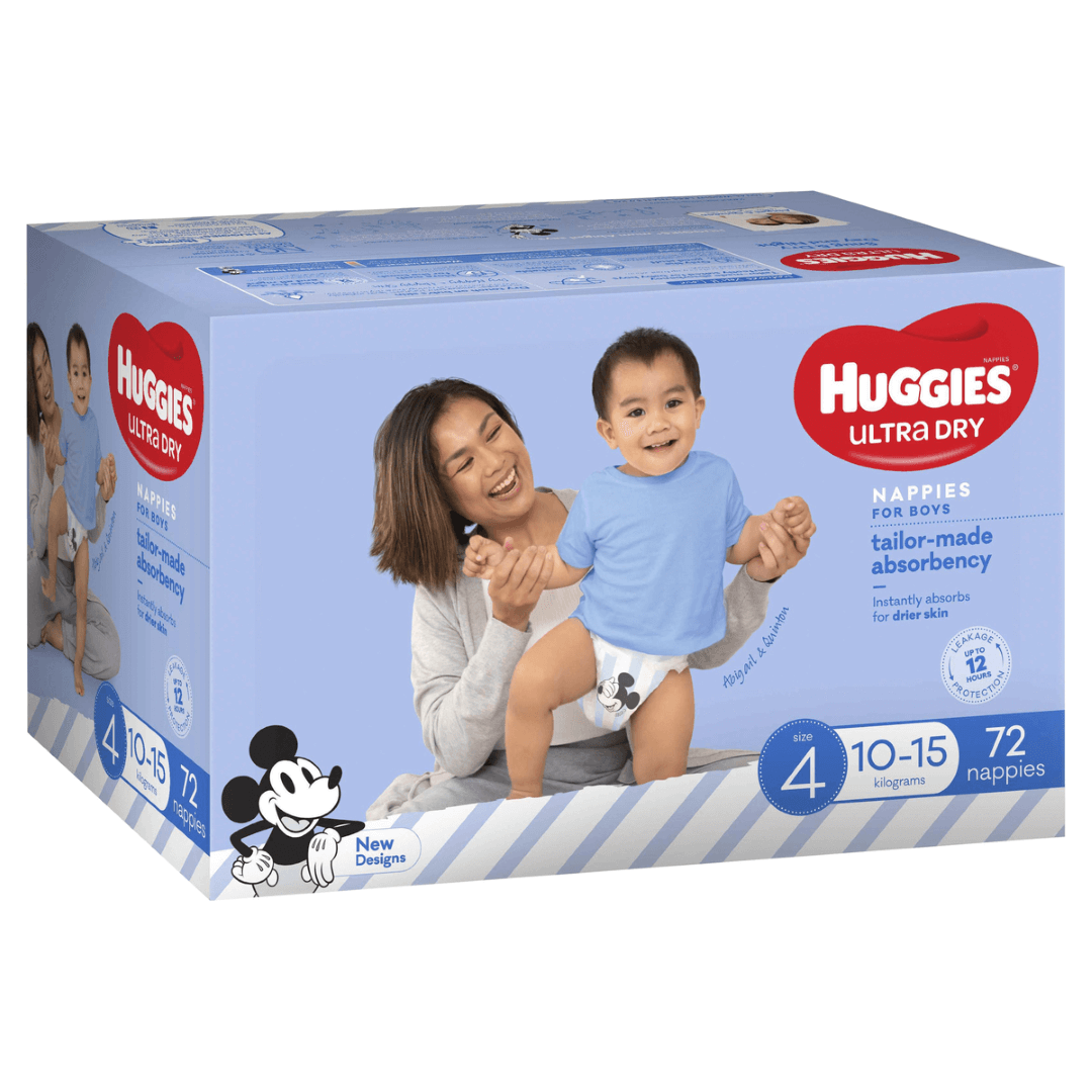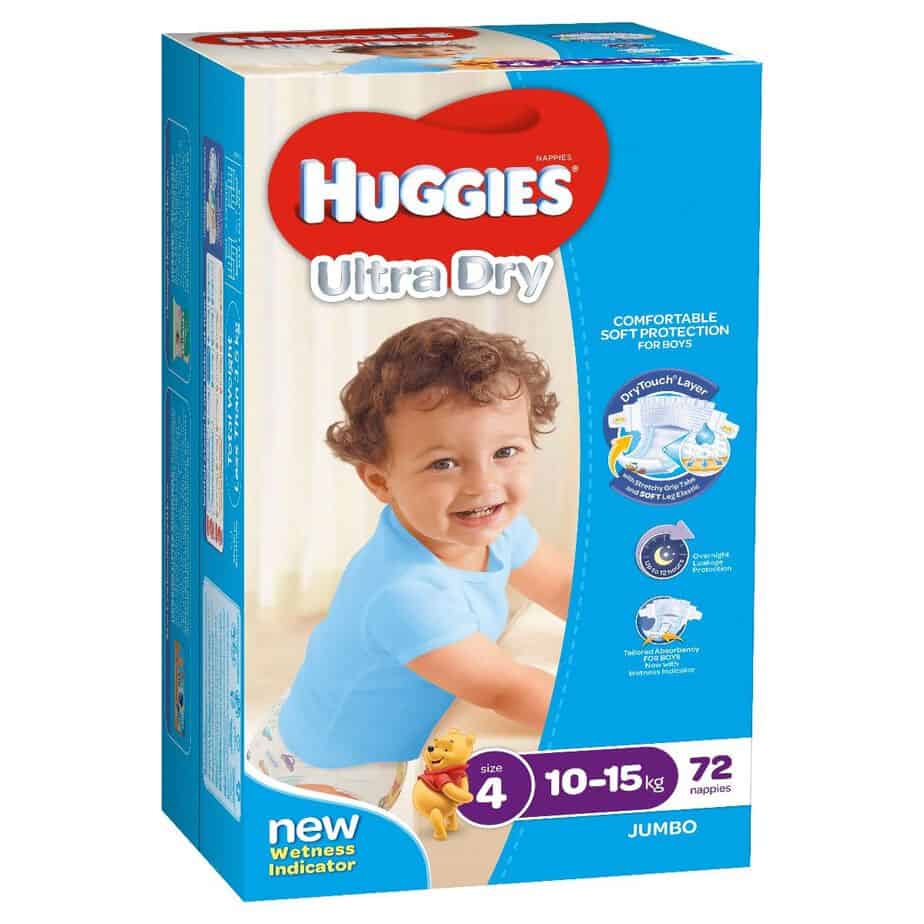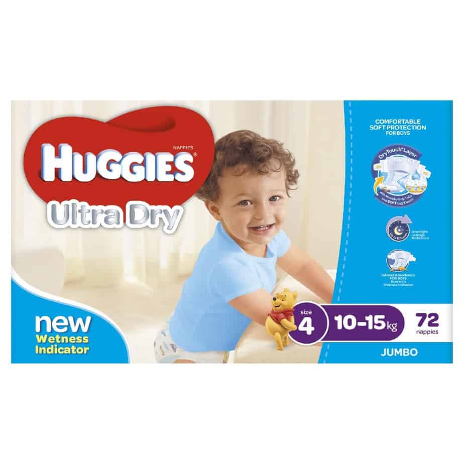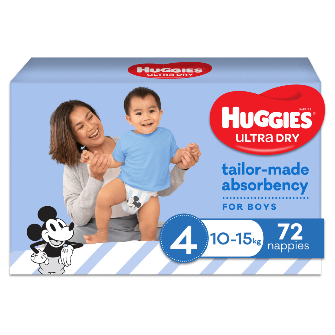 Huggies Ultra Dry nappies are available in four sizes: